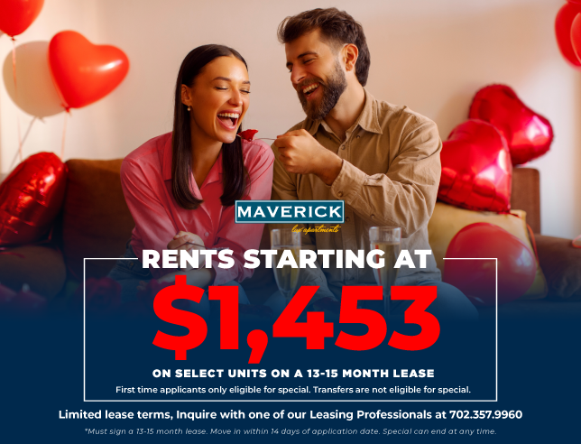At Maverick, you’ll get all the convenience of the neighborhood as well as the thrill and excitement of the downtown area. Our luxury apartments near the Las Vegas strip are minutes from shopping, dining, and major employers, as well as Vegas hot spots such as Allegiant Stadium, MGM Grand, and T Mobile Arena.