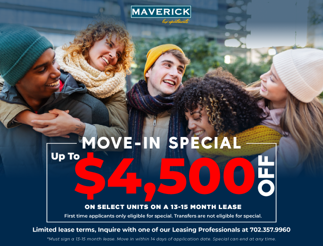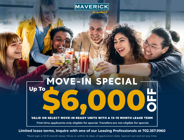 At Maverick, you’ll get all the convenience of the neighborhood as well as the thrill and excitement of the downtown area. Our luxury apartments near the Las Vegas strip are minutes from shopping, dining, and major employers, as well as Vegas hot spots such as Allegiant Stadium, MGM Grand, and T Mobile Arena.